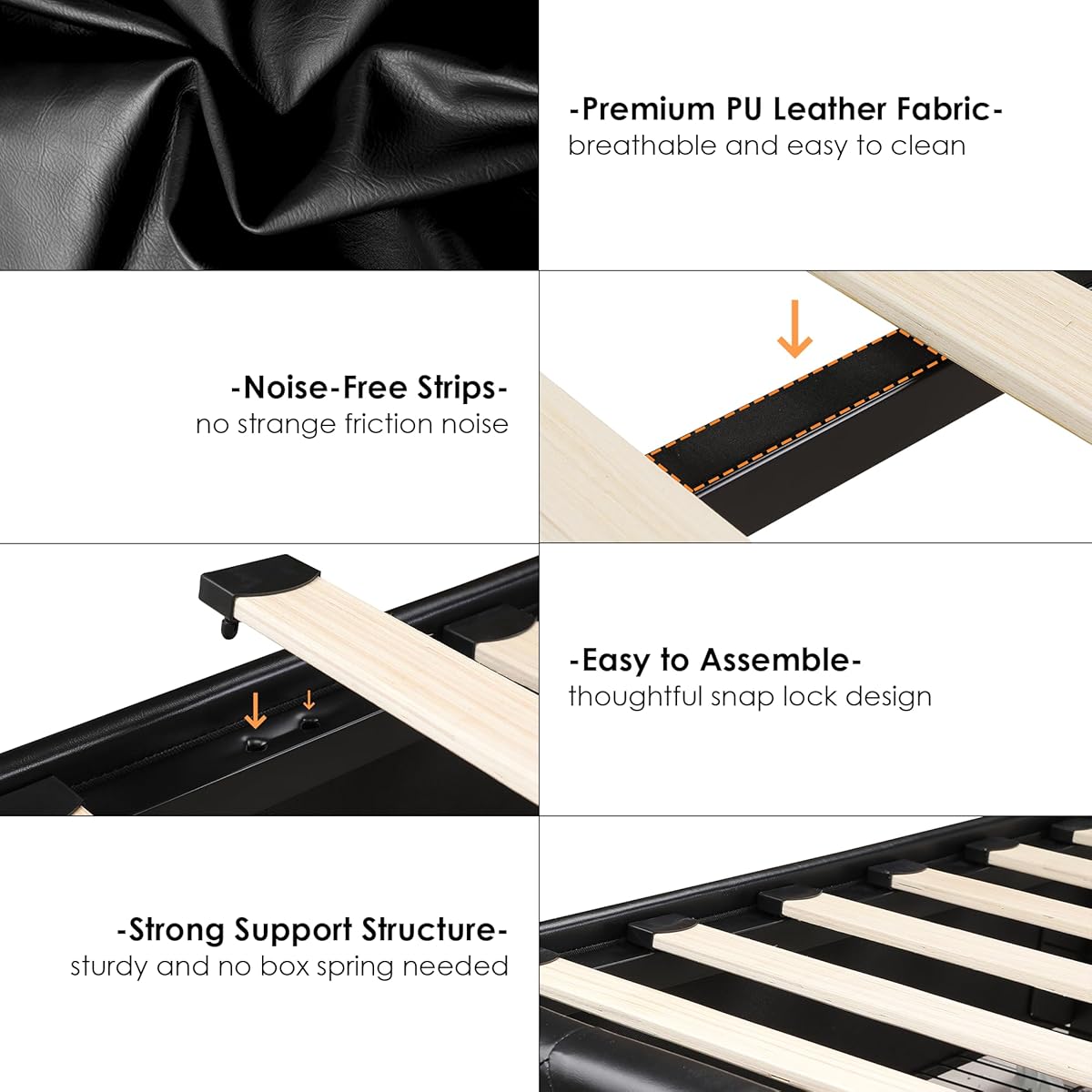 Sturdy, Noise-Free Platform Support: Constructed with a metal frame and solid wood slats, offering 950 lbs weight capacity without needing a box spring, with snap locks and silent strips to eliminate friction noise.
