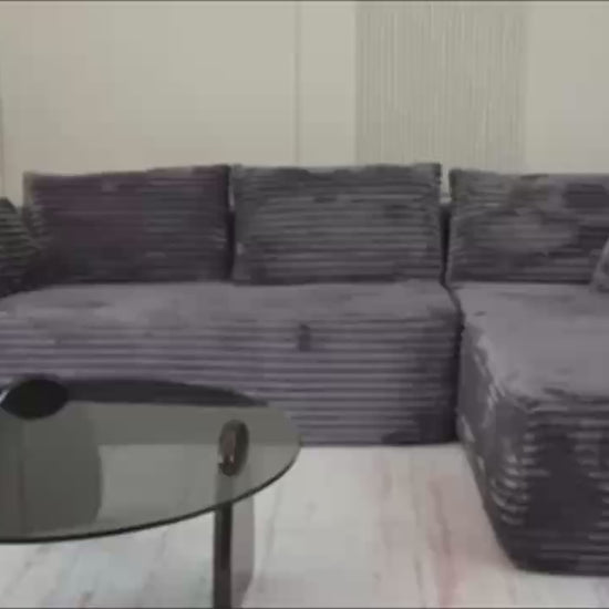 Convertible Design: The L-shape configuration includes a chaise lounge section, which can be rearranged to suit different room layouts. The "sofa bed" description suggests it can be converted for sleeping, though the mechanism is not shown in the provided images.