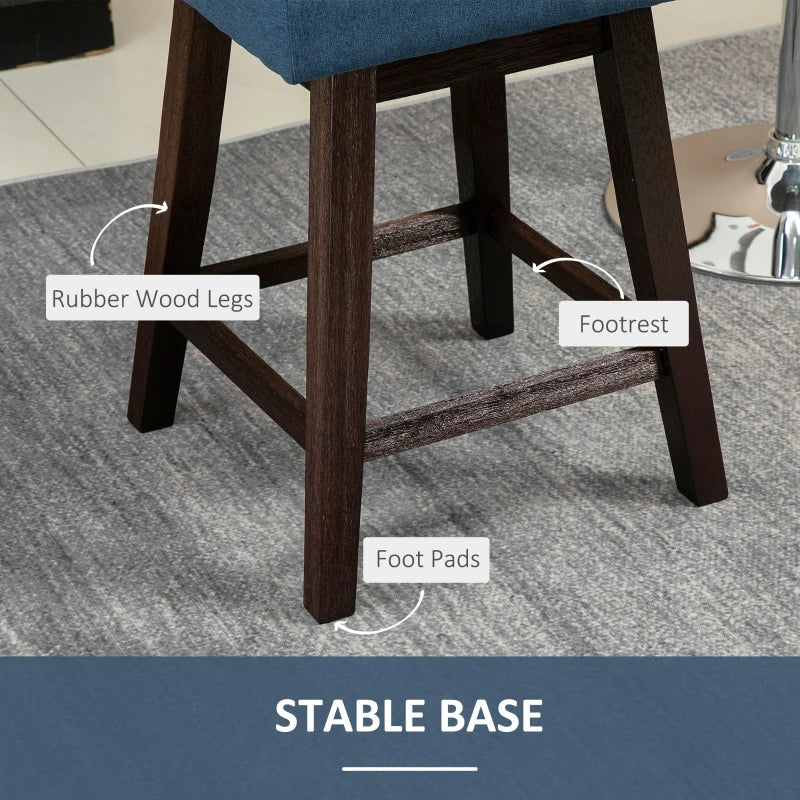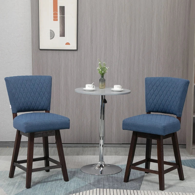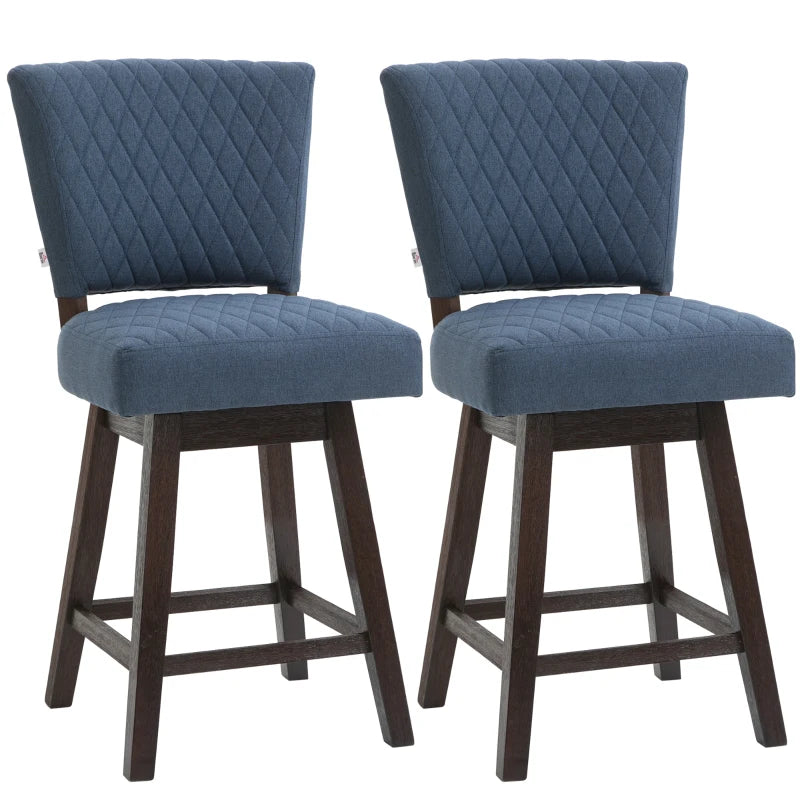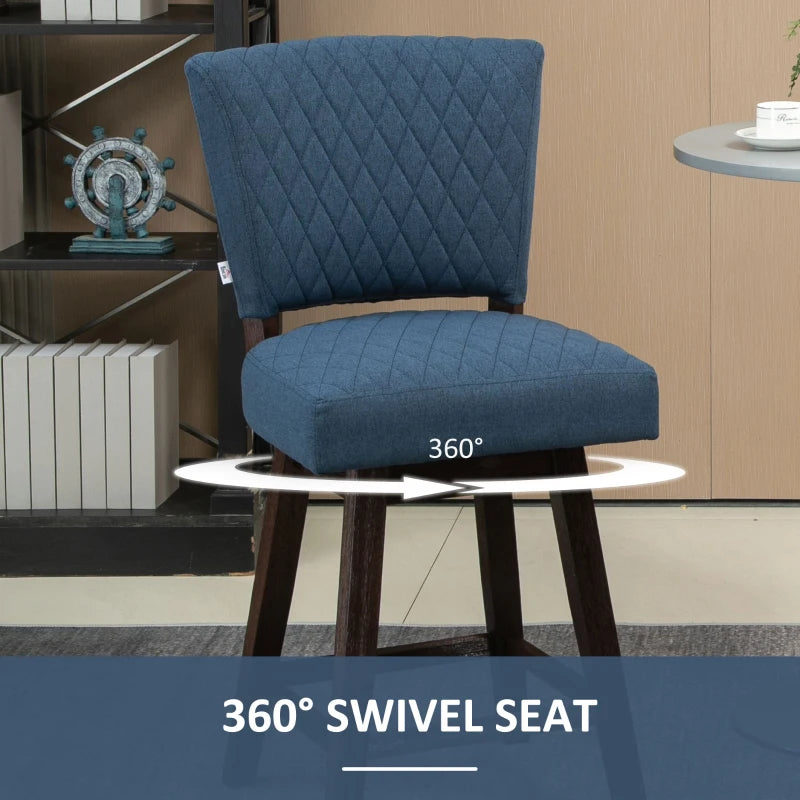 旋转吧台凳,带靠背的柜台高度吧台凳,橡胶木腿和脚凳,适用于厨房、餐厅、酒吧,深蓝色