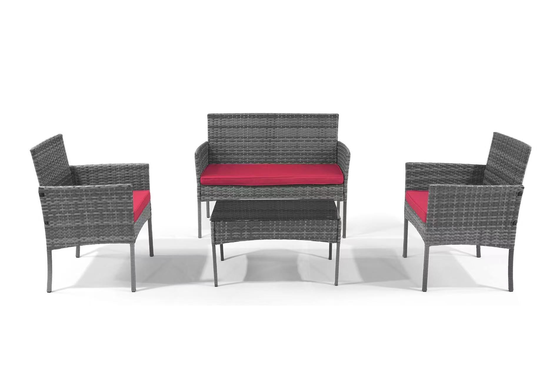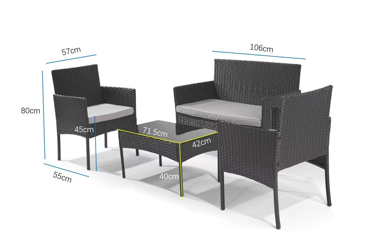 - Complete 4-Piece Set: This set includes a loveseat, two single armchairs, and a coffee table, designed to comfortably seat four people.