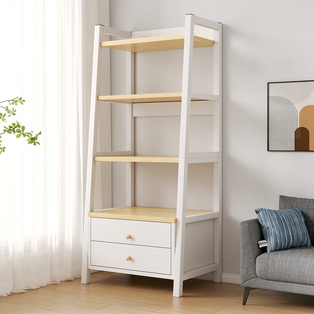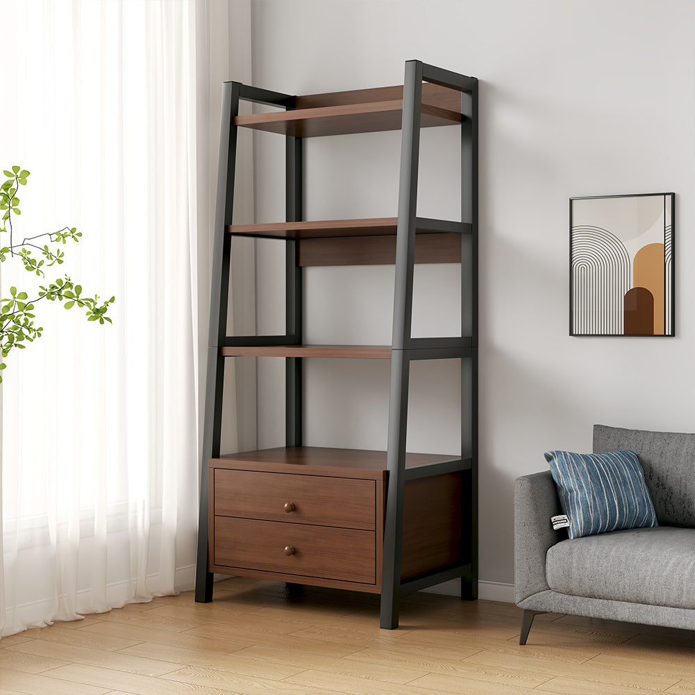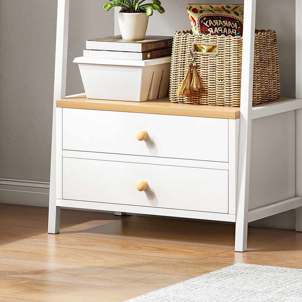 5 层金属书架,独立式工业梯架,带 2 个储物抽屉