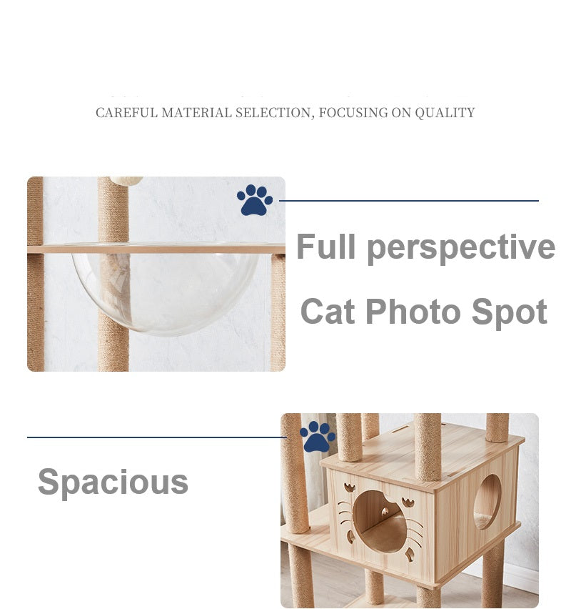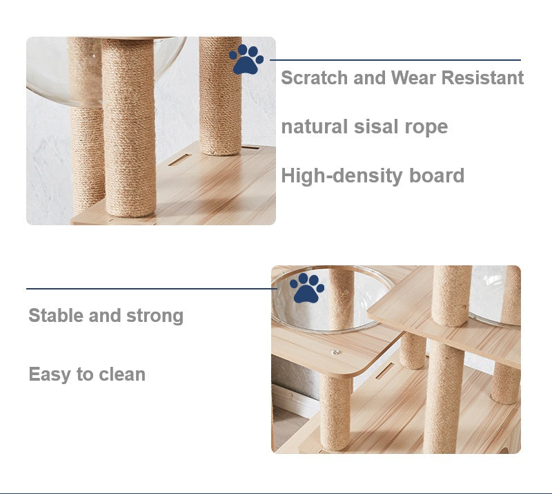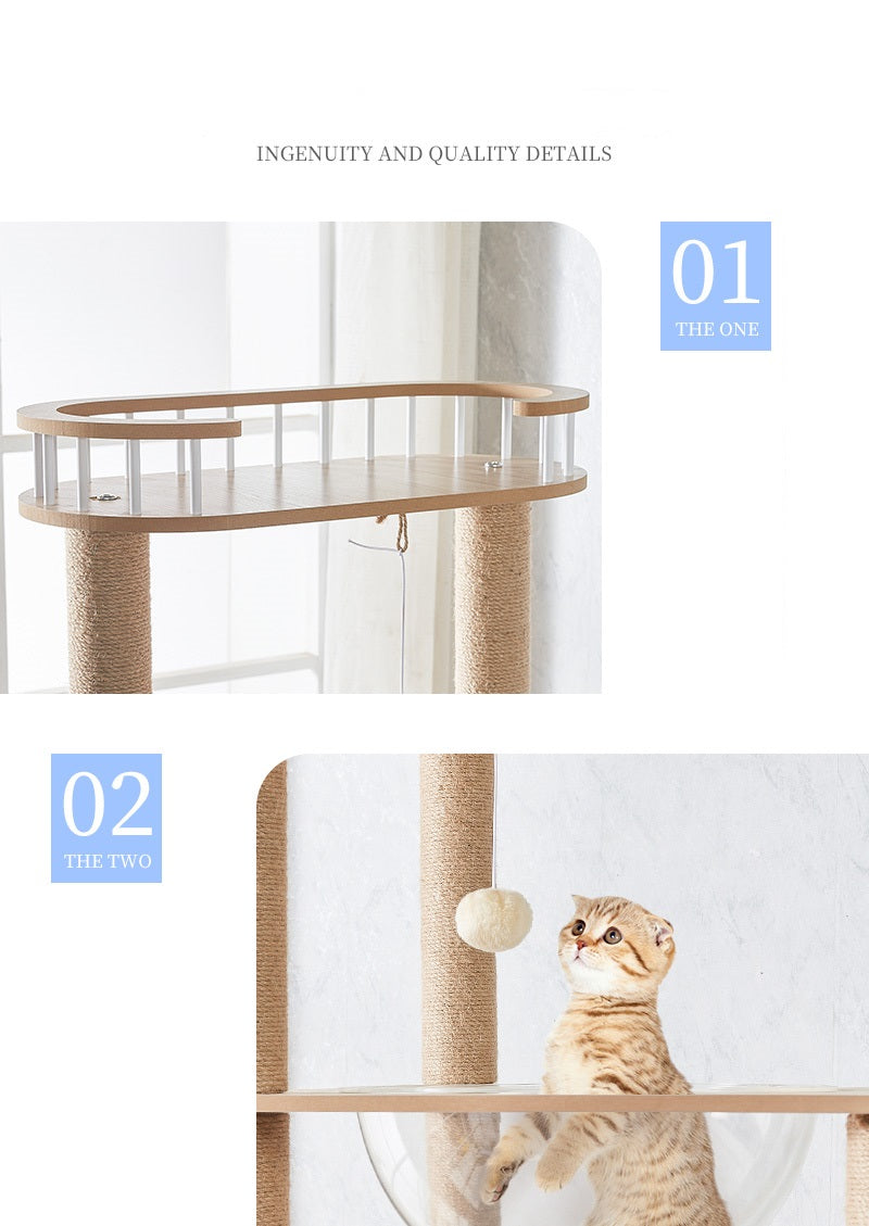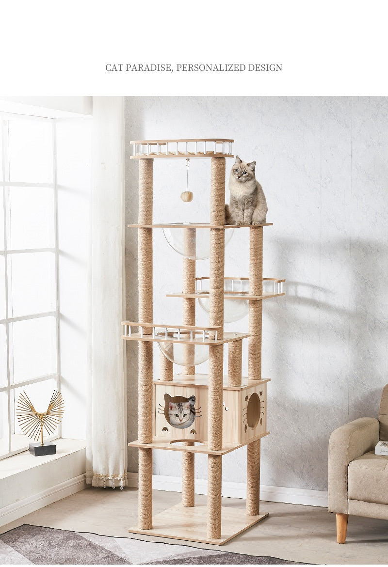 MMW 6 英尺豪华猫抓板猫屋别墅猫爬架小型猫架猫配件实木猫塔太空舱