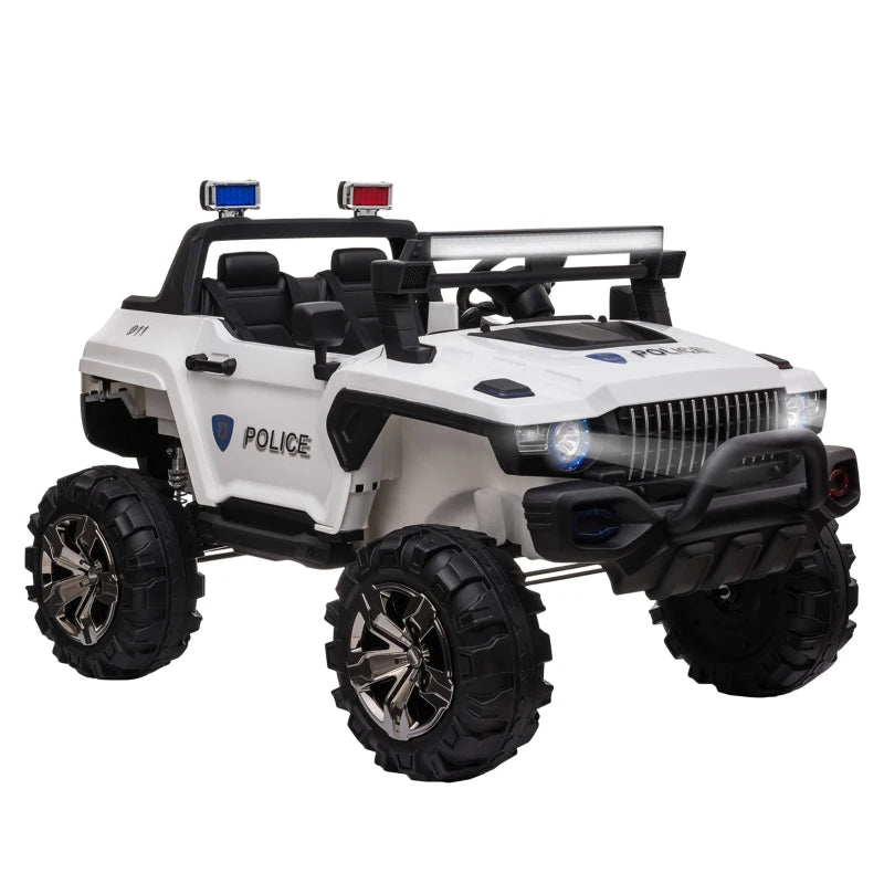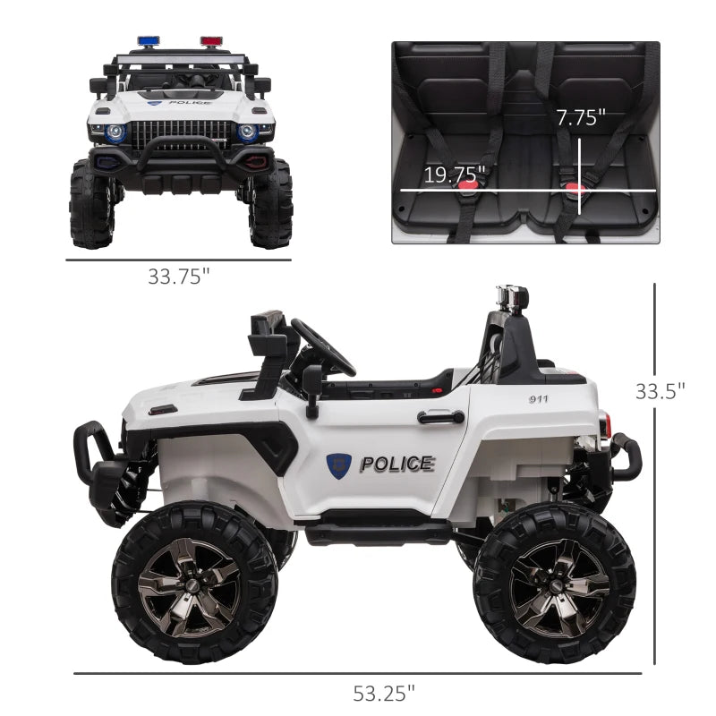 - • 2 座乘坐式警车,配有安全带,适合 2 名 3-5 岁儿童