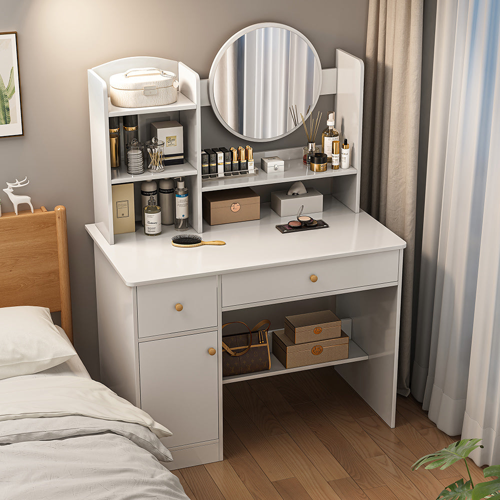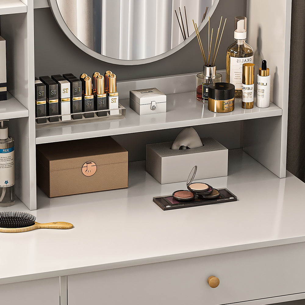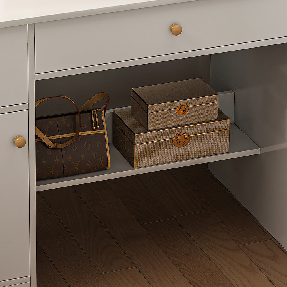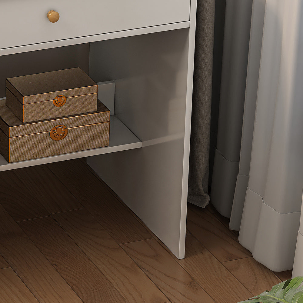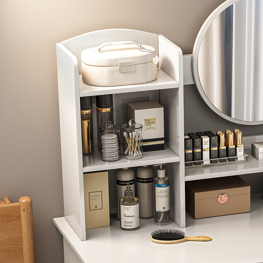 - 充足的存储空间:化妆台配有两个开放区域、2 个抽屉和 1 个储物柜,有足够的存储空间存放您所有的化妆品,让您告别卧室杂乱,拥有舒适的环境。