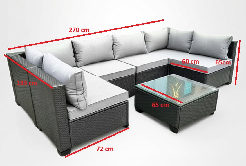 Total Sofa Length (Long Side): 270 cm (approx. 106 inches)