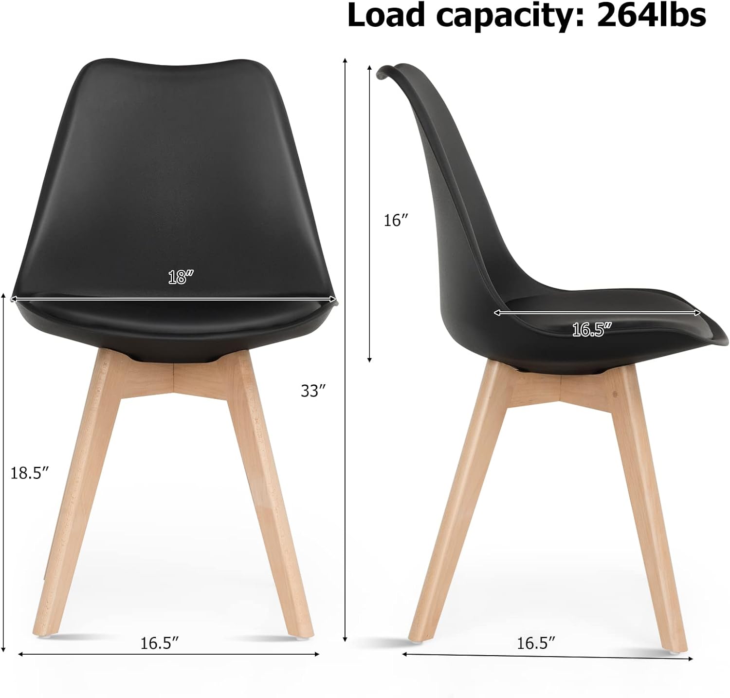 MMW 餐椅 4 件套 黑色塑料厨房柜台椅 带人造皮革软垫座椅实木腿