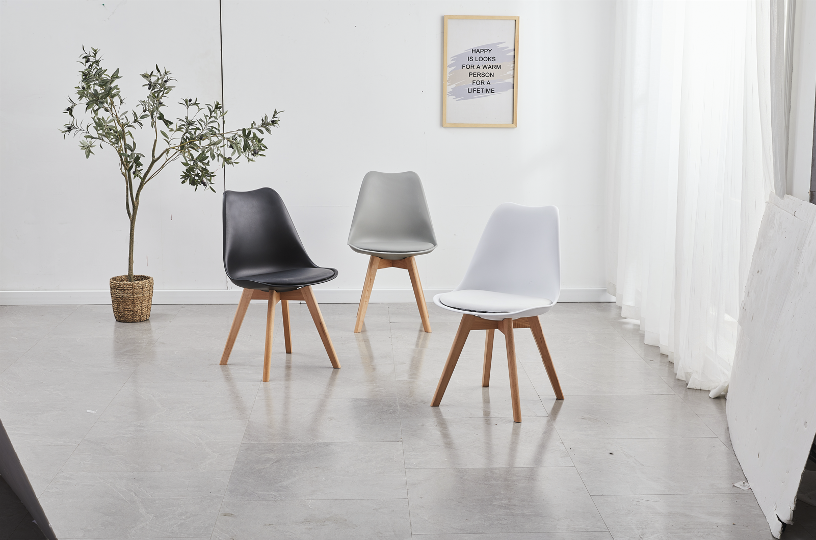 - 优质材料:餐椅采用异形外壳制成的舒适弧形座椅,非常适合靠背的形状,并配有坚固耐用的木质脚。