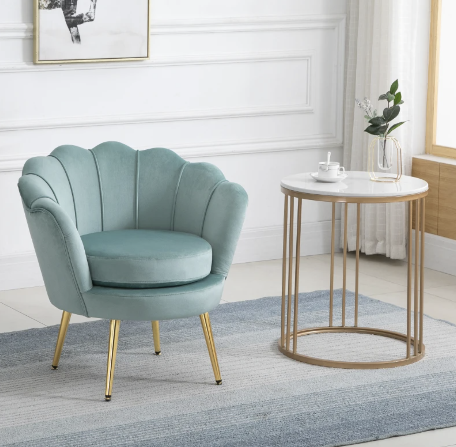 - 入门级豪华风格:这款边椅拥有优雅的莲花形靠背,使其成为一件引人注目的作品,而金色的金属腿则为您的家增添了复古魅力。