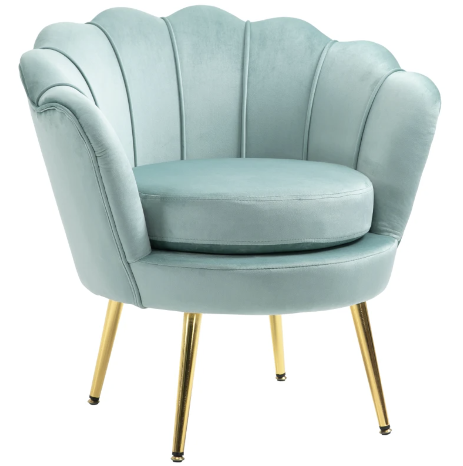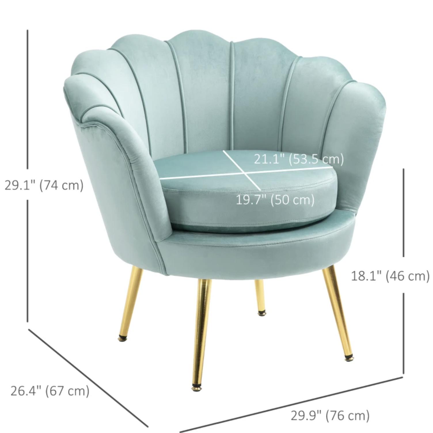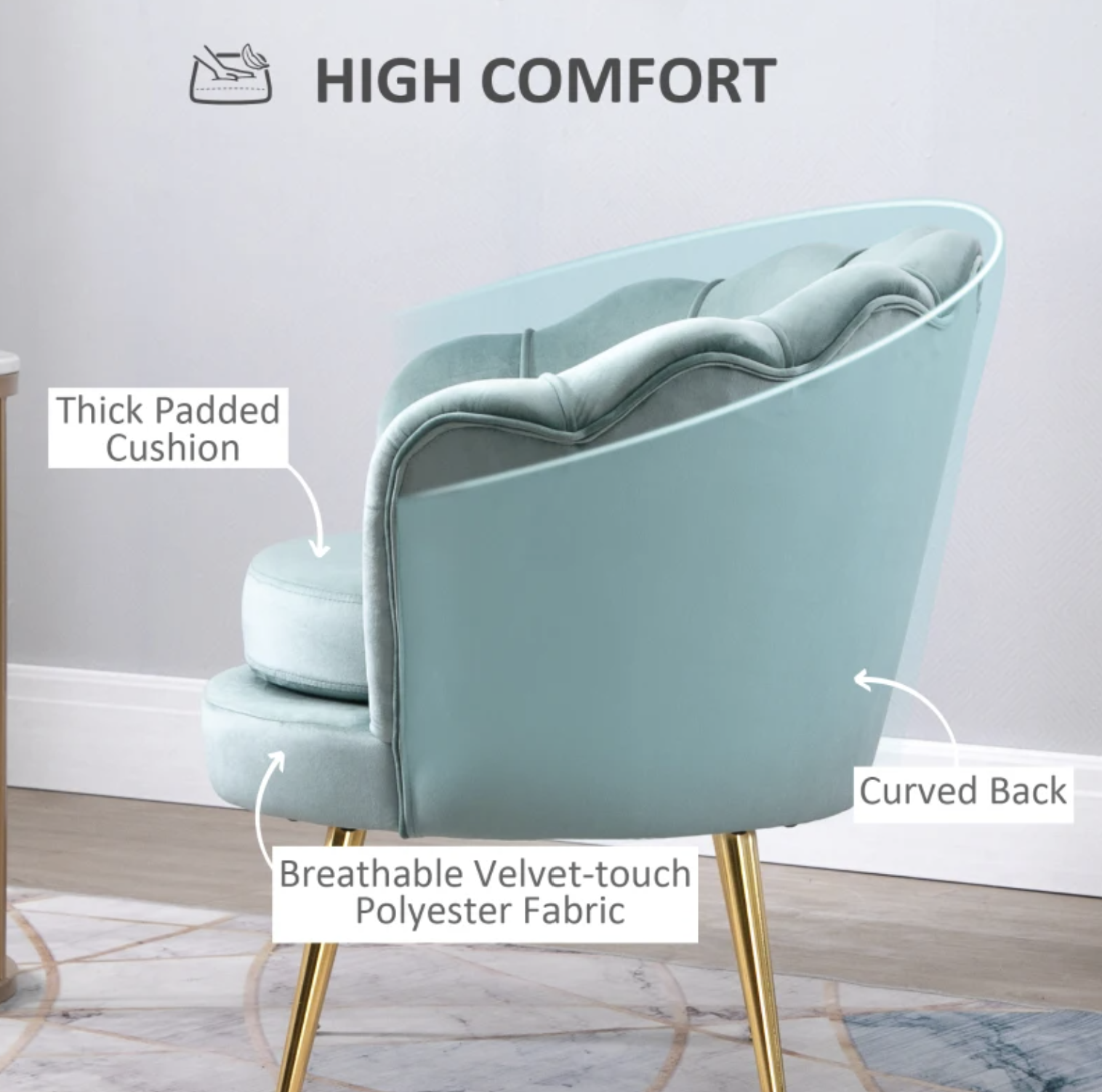 现代风格休闲椅,天鹅绒触感布艺休闲俱乐部椅,带金色金属腿,适用于卧室,绿色
