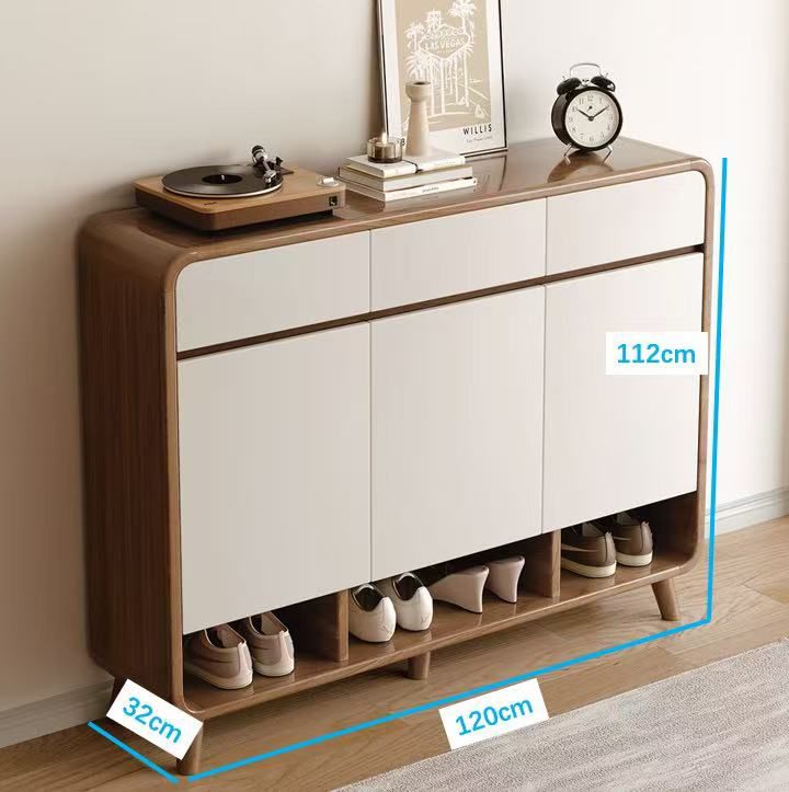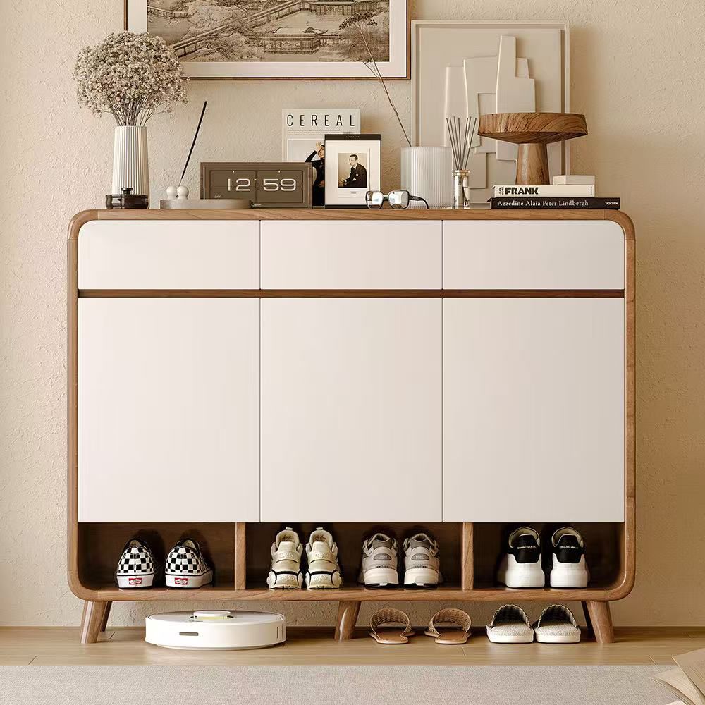 Three Large Storage Doors: The upper section features three large cabinet doors, perfect for storing shoes, accessories, or other entryway essentials out of sight.