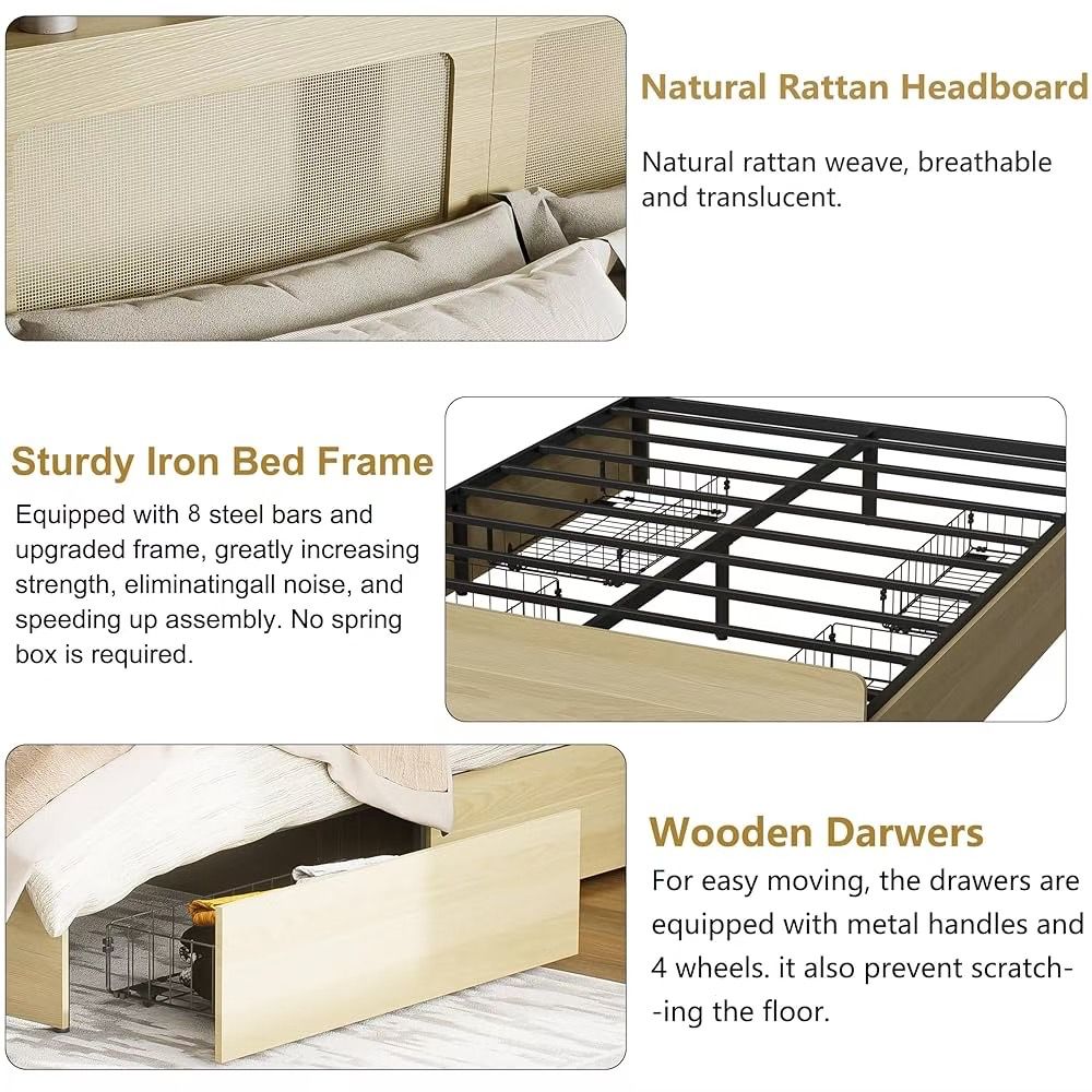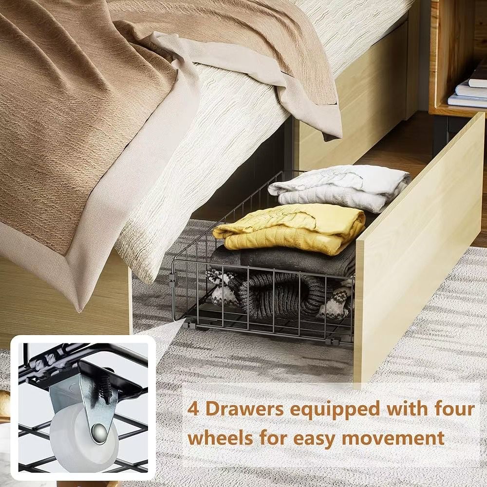 Smart Storage Solutions: Maximize your bedroom space with the integrated storage drawers beneath the bed. Perfect for stowing away extra linens, seasonal clothing, or any items you want to keep organized