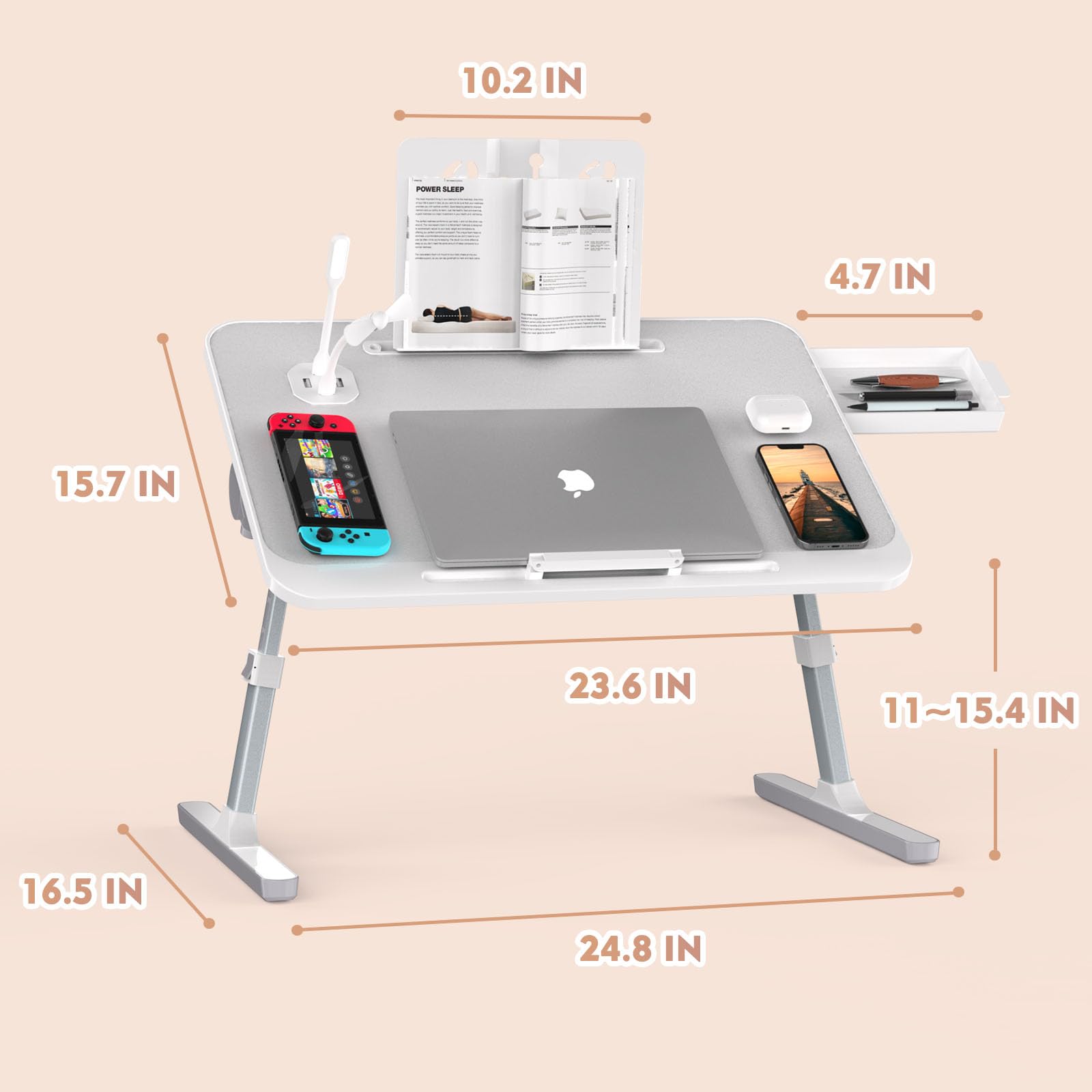 RAINBEAN 膝上型桌带充电口和书架,可折叠可调节笔记本电脑桌,适用于床和沙发