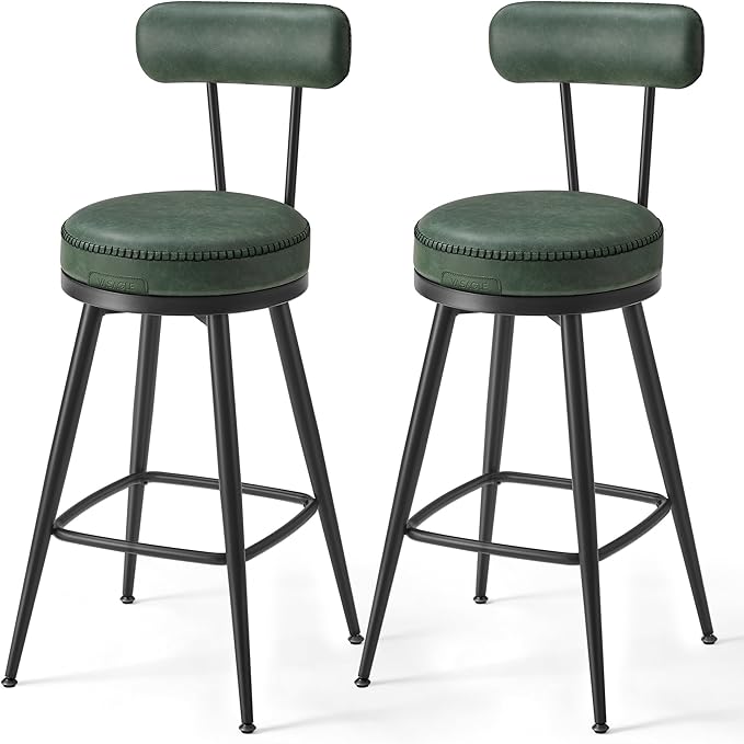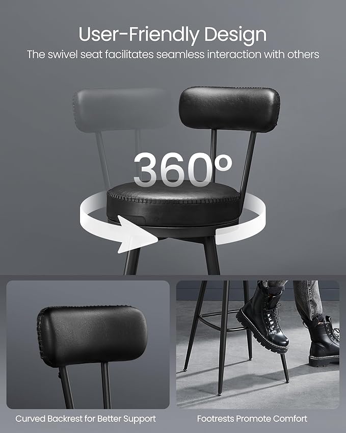 Add a touch of elegance and comfort to your kitchen or bar area with this set of 2 counter-height swivel bar stools. Designed in a mid-century modern style with soft synthetic leather and ergonomic back support, these stools blend style, function, and durability for everyday use.