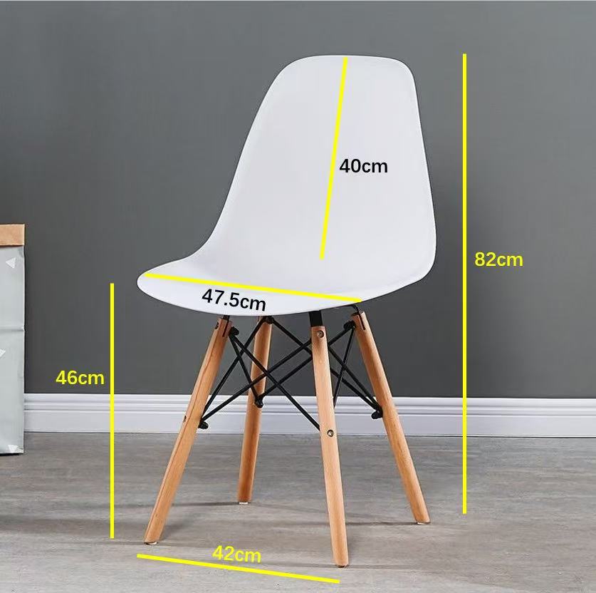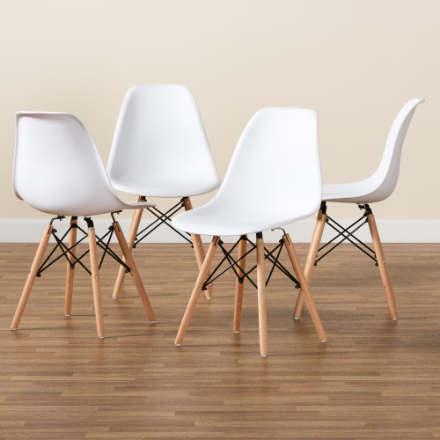 一套 4 把现代埃菲尔餐椅 - 木质椅腿和金属支撑架