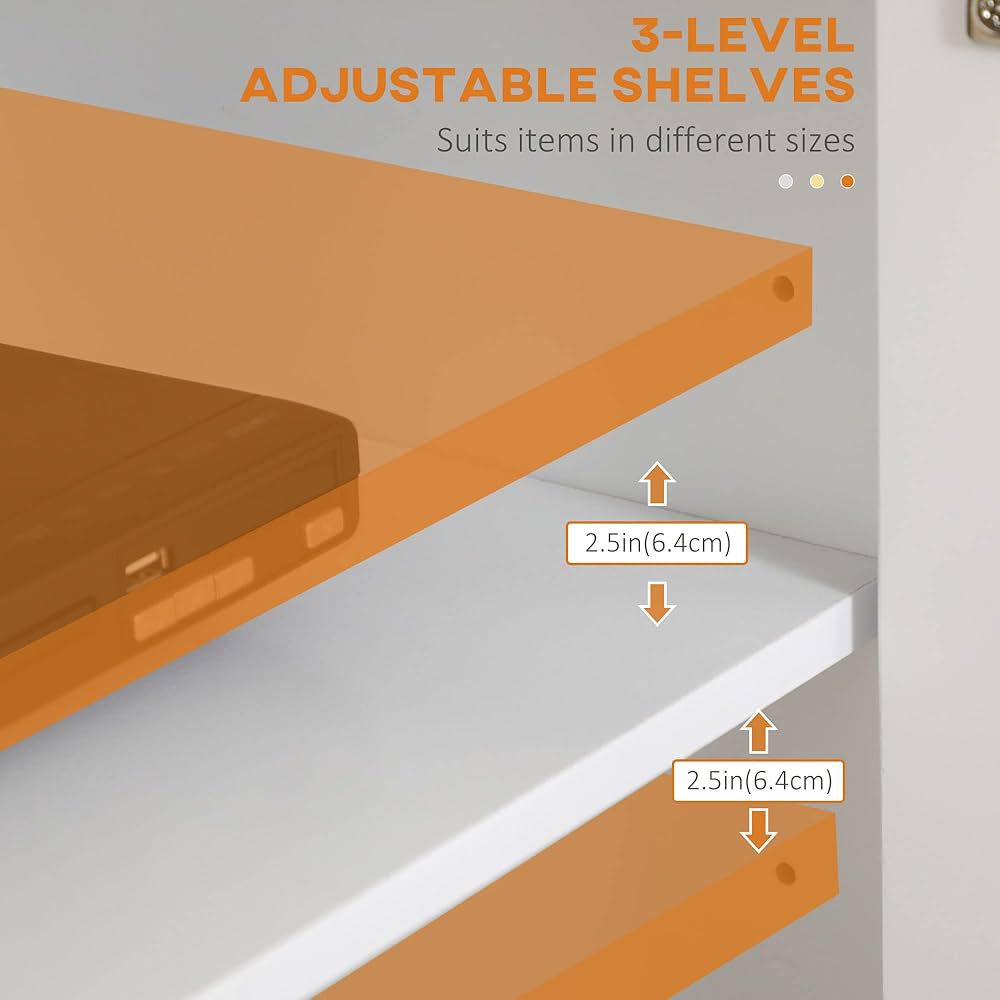 Features: Adjustable shelves and cutouts in the back panel for cable management.