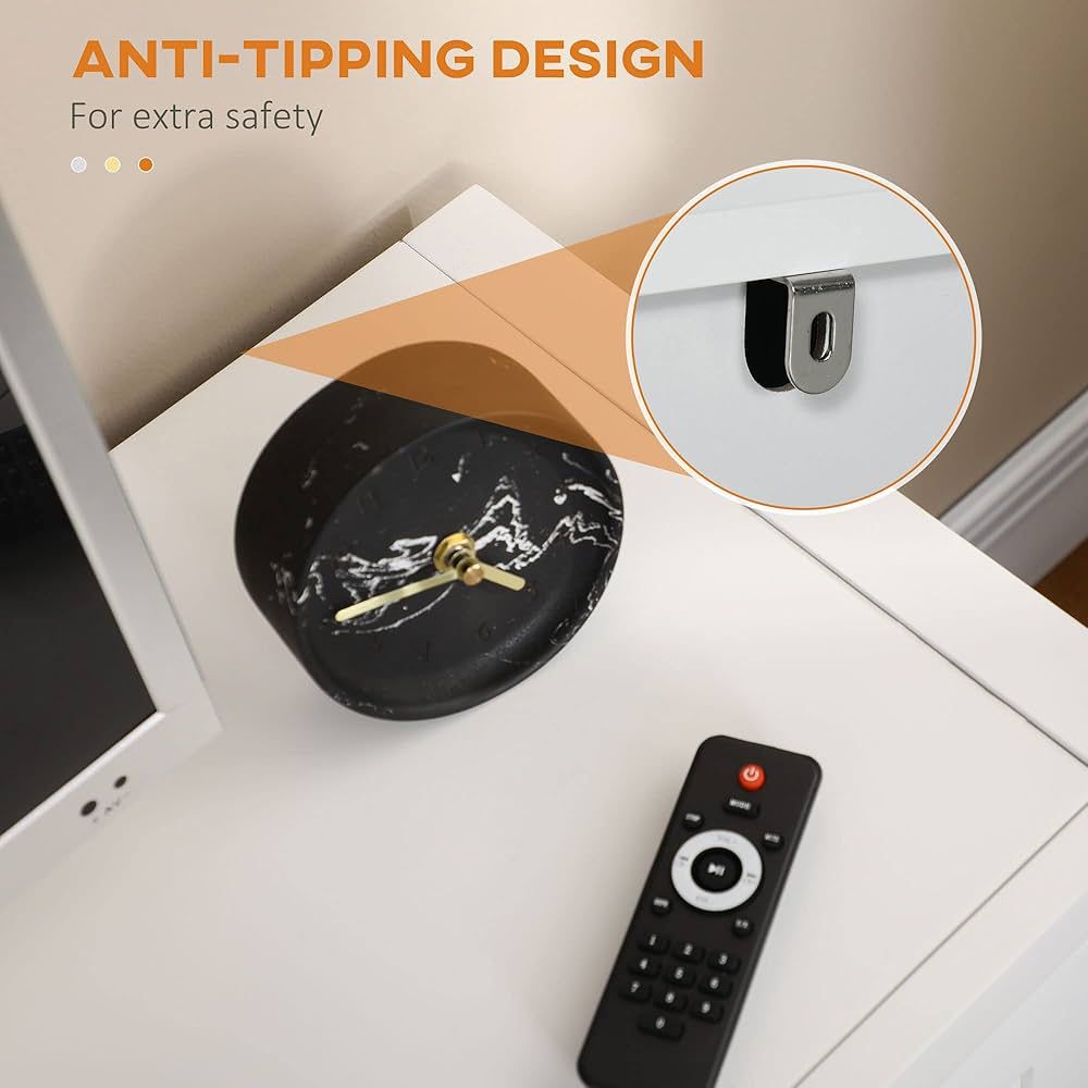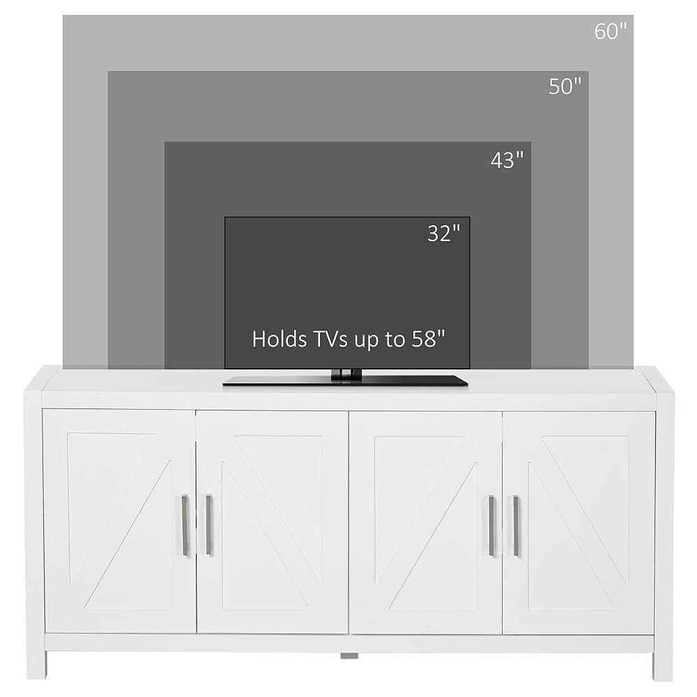 Style: Modern farmhouse design with a clean white finish and barn door-style fronts.